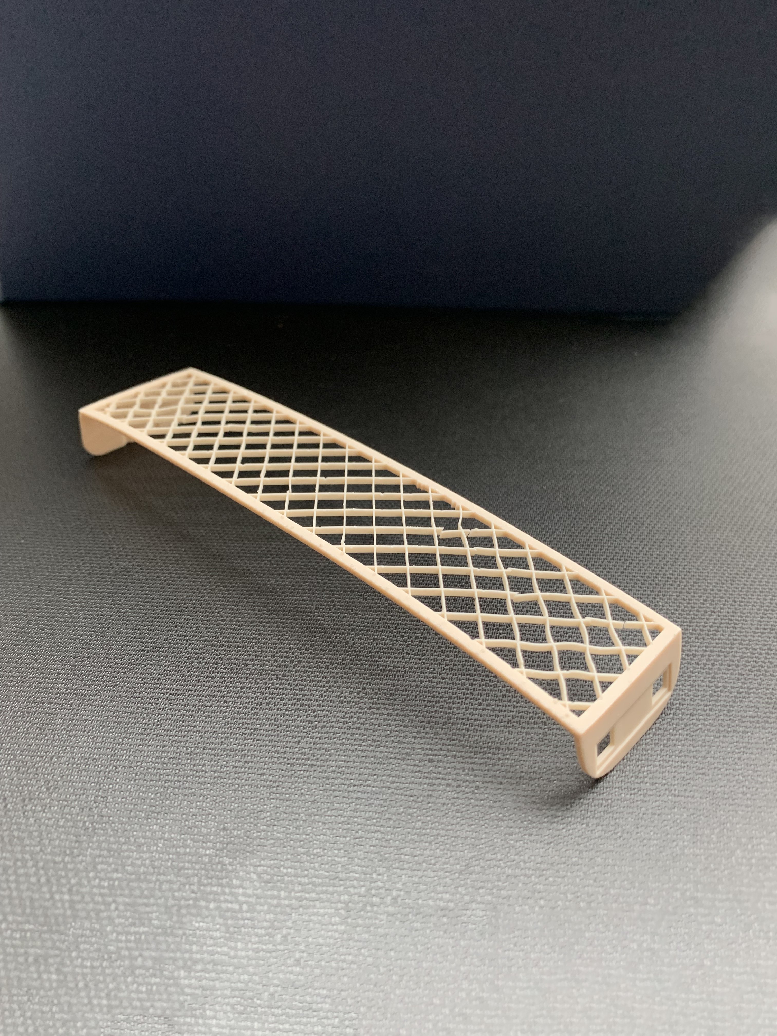 NOTE: The part is very fragile, with the frame cross-members only .3mm across. I plan on glueing on parts G2, G18, E5 and E13 BEFORE removing the 3D printed supports. Also, I think it might be best to cure the part first with the supports in place.