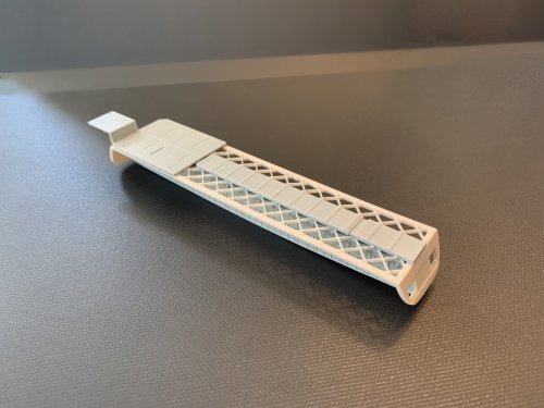 The second image depicts my first attempt at printing the flooring (Version 1). The bulkheads were not correct, and as you can see, some grid sections broke while others warped as a result of removing the supports before curing and glueing of accessory parts.
